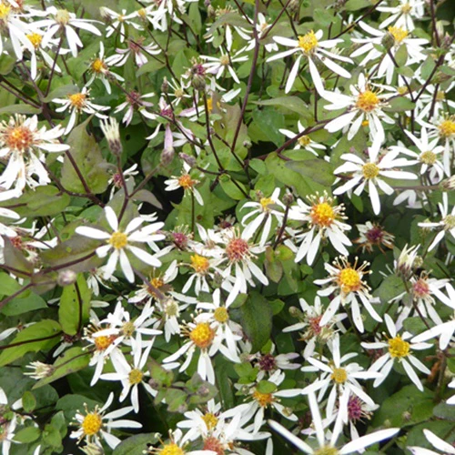 Aster divaricatus ‘Eastern Star’ est une plante vivace pouvant atteindre 55cm de haut.. Elle apprécie une exposition soleil, mi-ombre et ombre. Le période du floraison est de août à septembre.