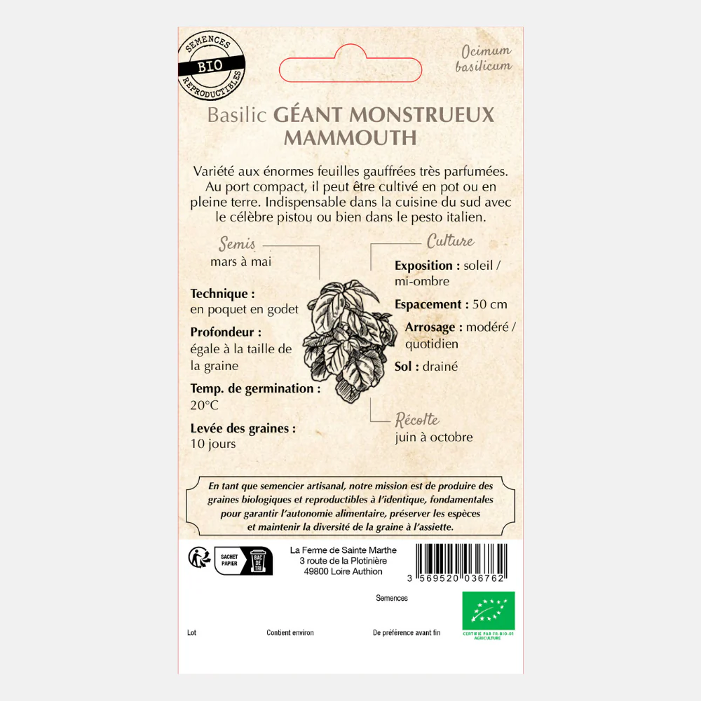 Le basilic à grandes feuilles est un classique indispensable en cuisine et au jardin. Avec ses grandes feuilles aromatiques, ce basilic ajoute une saveur fraîche et piquante à vos plats préférés, comme le pesto, les salades, les pâtes et plus encore.