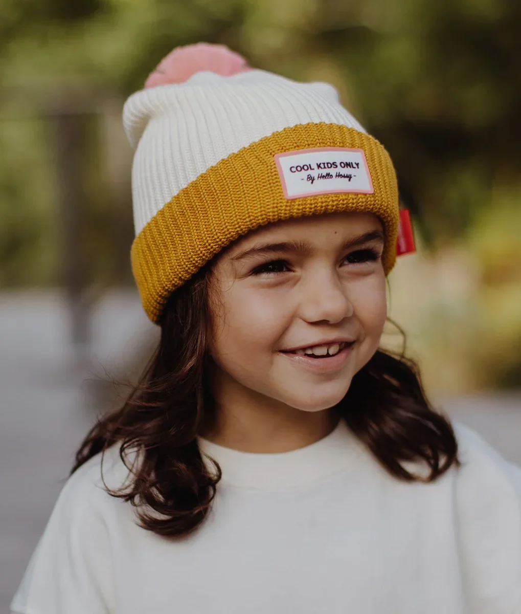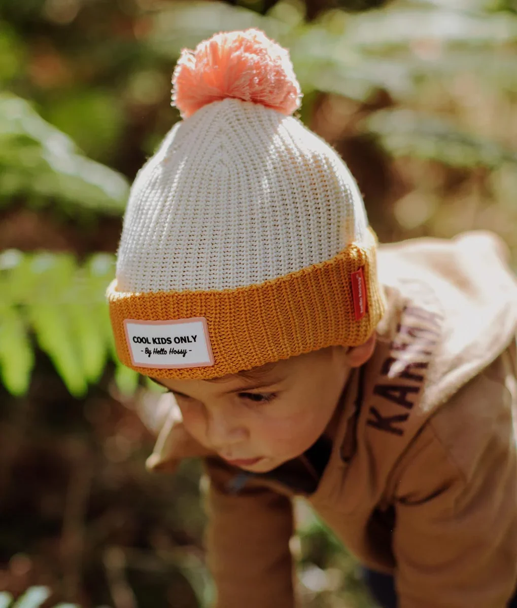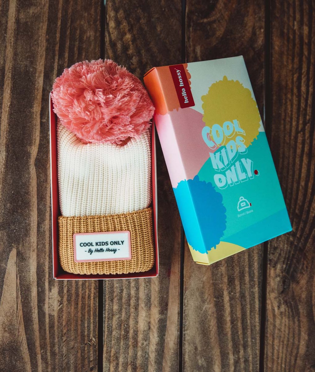 Le Bonnet pour bébés et enfants Color Block Camel est un modèle disponible pour les enfants et les parents. À porter en famille. Depuis son lancement, il fait partie de nos best-sellers. Coton biologique certifié Oeko-Tex, doublure polaire, pompon coloré rose, tout doux, tout chaud, il devrait ravir les kids. Un beau cadeau enfants à offrir !
