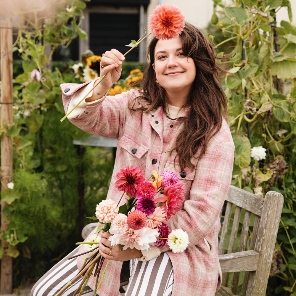 Dans ce coffret, vous trouverez les 11 dahlias préférés de Nina. Photographe attitrée de Nina, elle est une véritable créatrice de talent. Elle nous a aidés à composer notre collection de dahlias cette année, et nous avons été particulièrement ravis qu’elle choisisse ses 11 coups de cœur et les réunisse dans ce coffret exceptionnel.