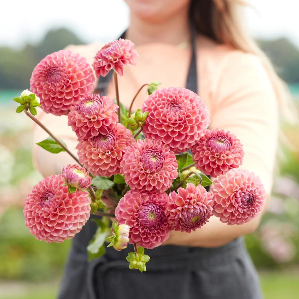 Le dahlia ‘Caitlin’s Joy’ est un dahlia pompon joyeux aux fleurs rondes dans des tons chauds de rose. En automne, le rose s’illumine, comme le montrent les deux dernières photos. Ses pétales compacts forment une petite boule parfaite qui se distingue immédiatement dans une bordure ou un jardin de fleurs à couper.