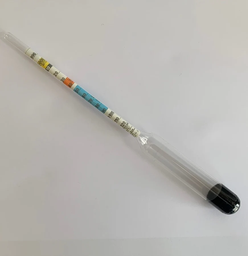 Méthode : Prenez un verre doseur rempli du liquide à mesurer (votre jus). Laissez l’hydromètre flotter dans le verre à mesurer. Lisez au niveau des yeux là où flotte l’hydromètre. vous pouvez immédiatement lire le résultat.