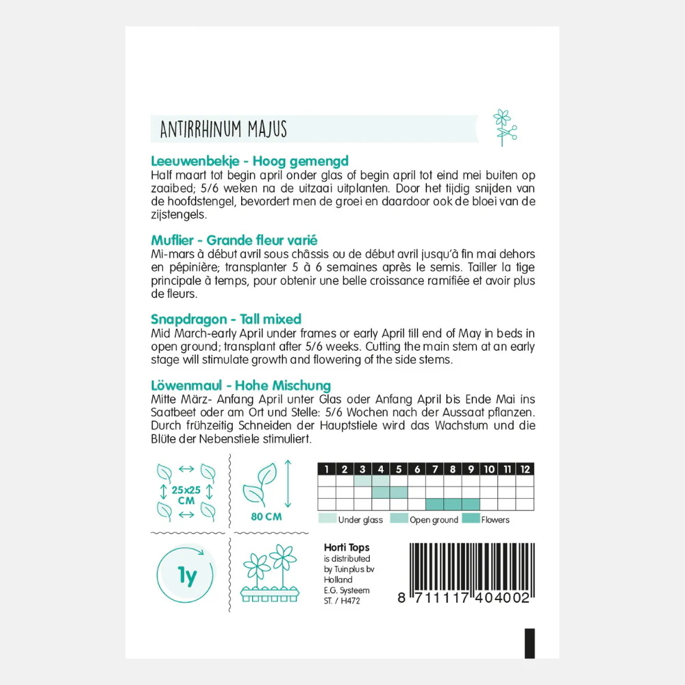 Emplacement Lumière de localisation Mi-ombre Hauteur 80 cm Taper Annuel Périodes Temps de semis à l’intérieur Mars Temps de semis à l’intérieur jusqu’à Avril Temps de semis à l’extérieur de Avril Temps de semis à l’extérieur jusqu’à mai Période de floraison de Juillet Période de floraison jusqu’à Septembre Caractéristiques des semences Graines par gramme 7500