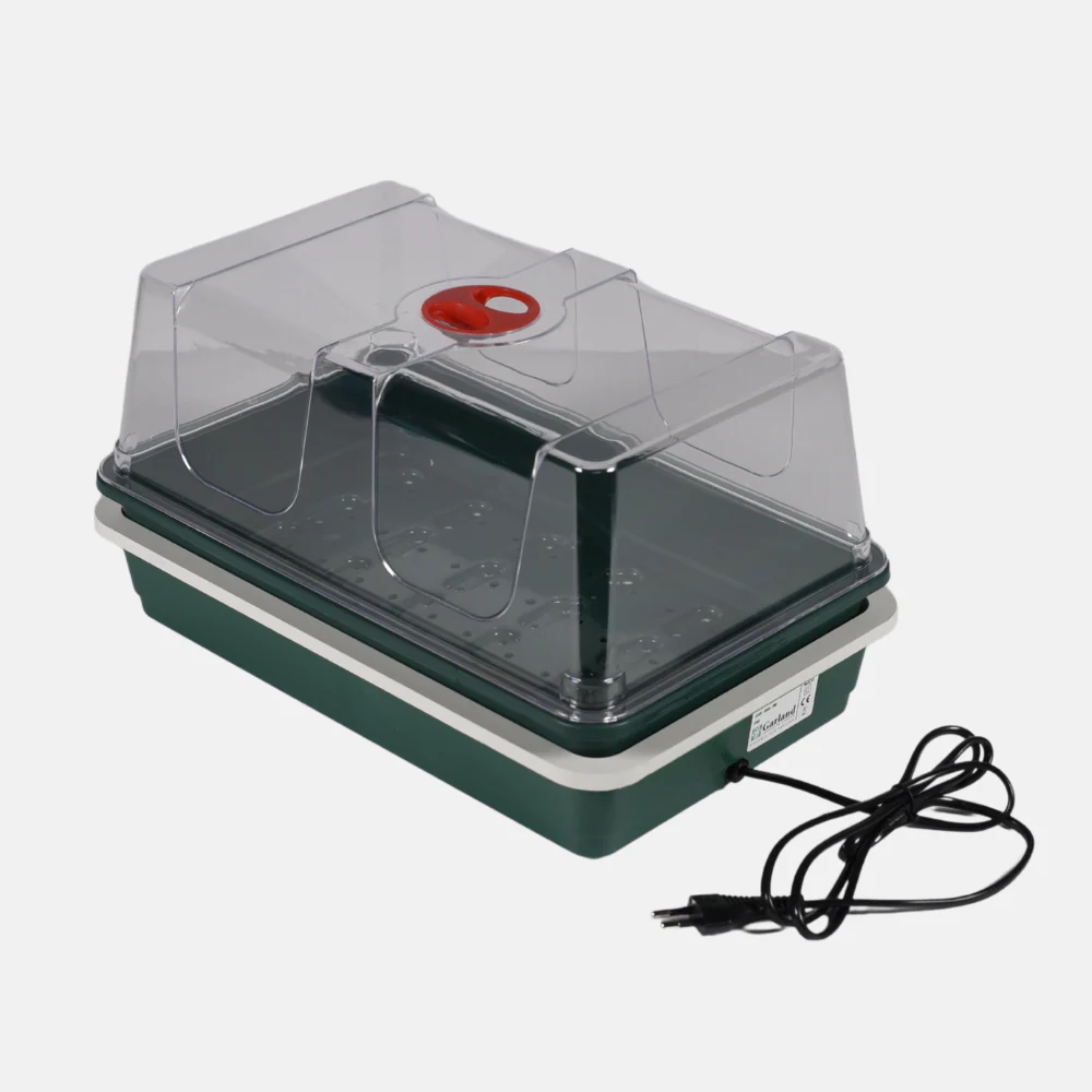 Améliorez vos résultats de semis et de coupe avec ce propagateur compact avec chauffage par le bas. Cette serre électrique est facile à utiliser et dispose d’une base chauffante économe en énergie avec une prise moulée et un cordon d’alimentation. Au-dessus de la base chauffante se trouve une boîte de culture séparée. Il est doté de trous de drainage au fond pour évacuer l’excès d’eau.