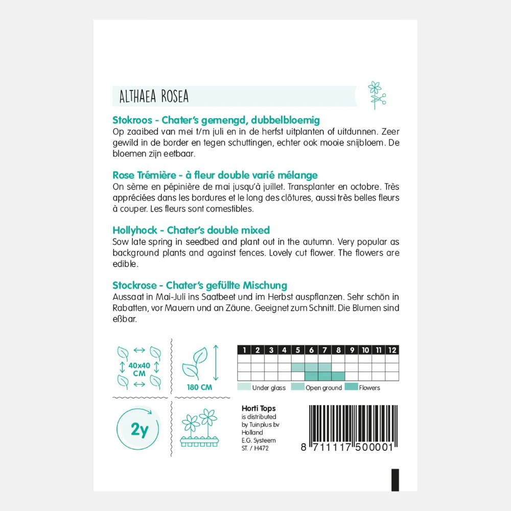 Rose trémière ‘Chater’s’ – à fleurs doubles, mixte