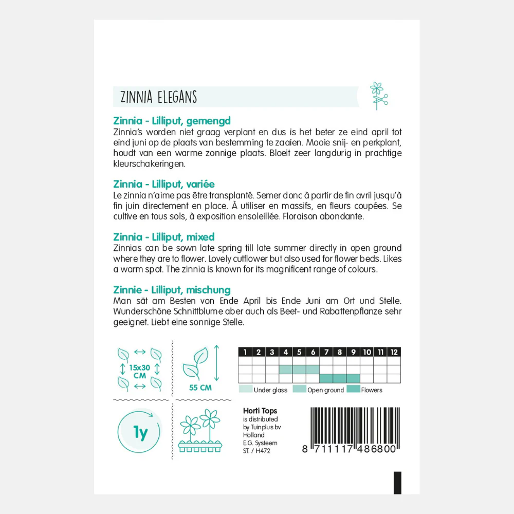 Zinnia ‘Liliput/Pompon’ – fleur double, mixte